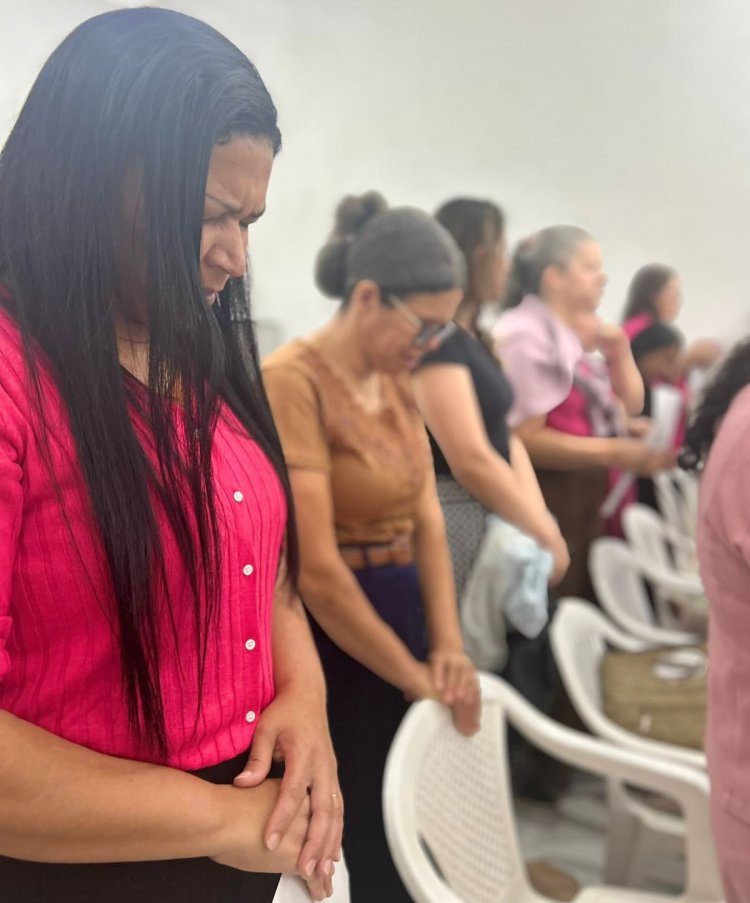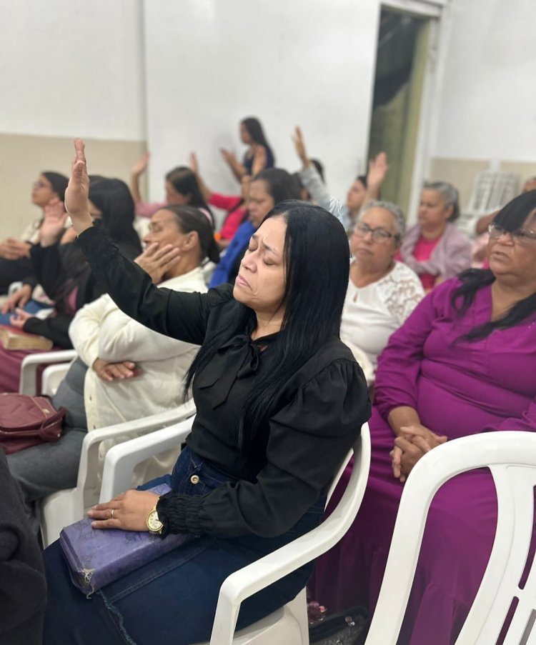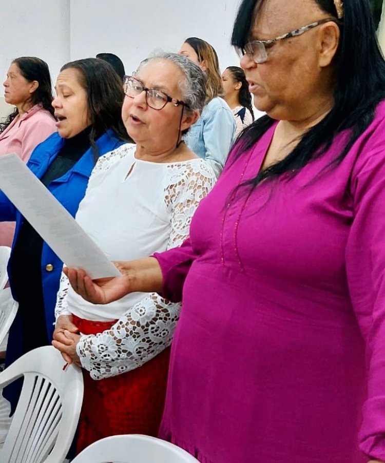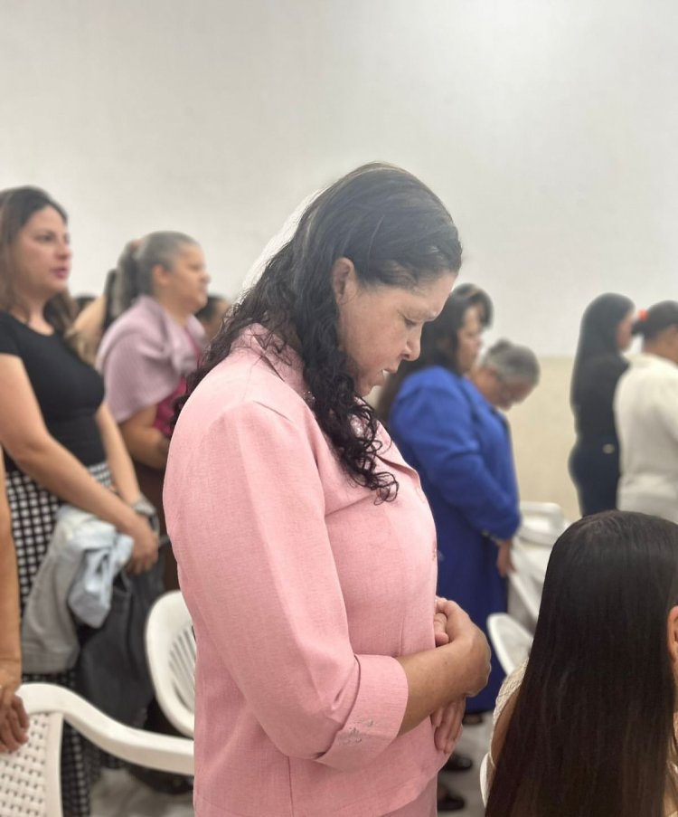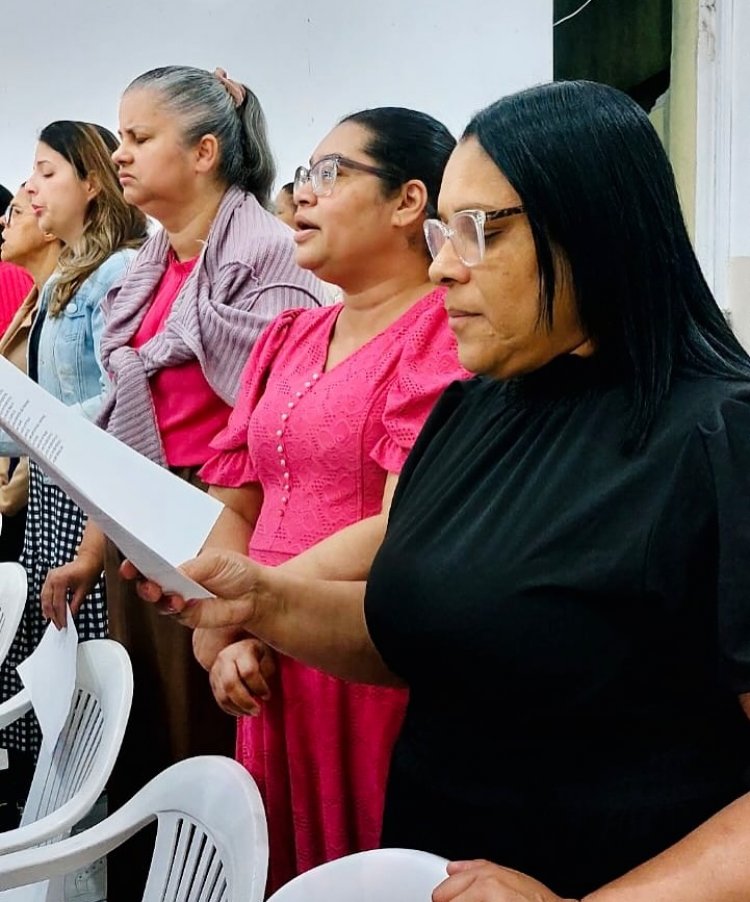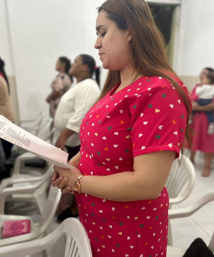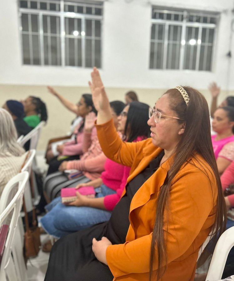 A irmã Lucília iniciu a reunião de mulheres com uma palavra de incentivo e valorização da mulher na sociedade, na família e na igreja.